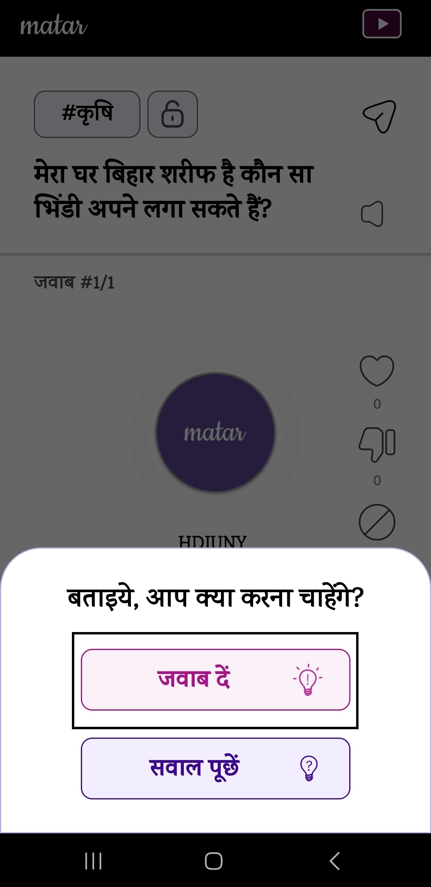 In the Matar App to answer a question. Click the Mic button on the home page of the app.The mic button is highlighted in black box in the screenshot below: