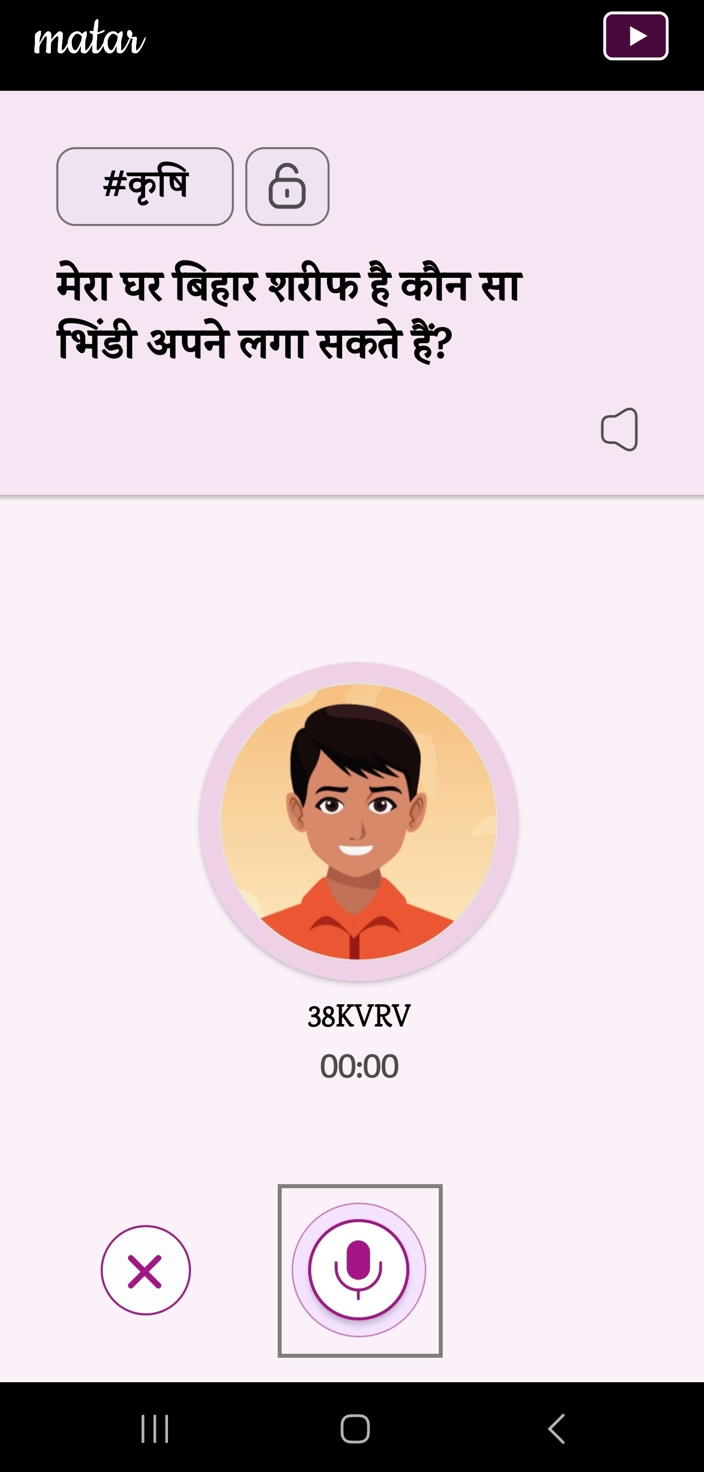 3. Matar will prompt you to record your answer by clicking on the mic button. The button is highlighted in screenshot below:
