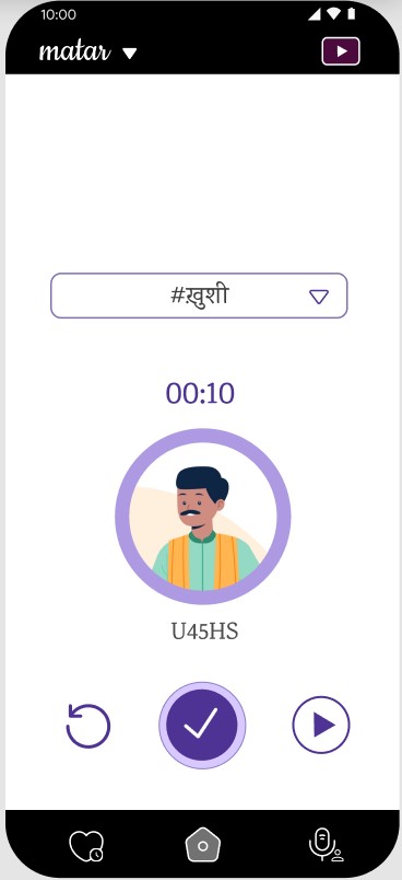 3. Matar will prompt you to record your answer by clicking on the mic button. The button is highlighted in the screenshot below: