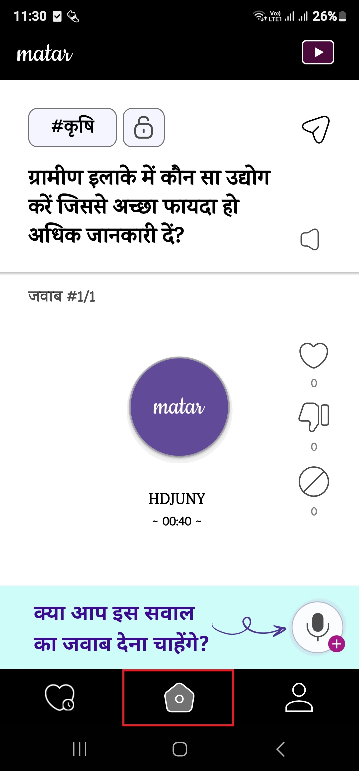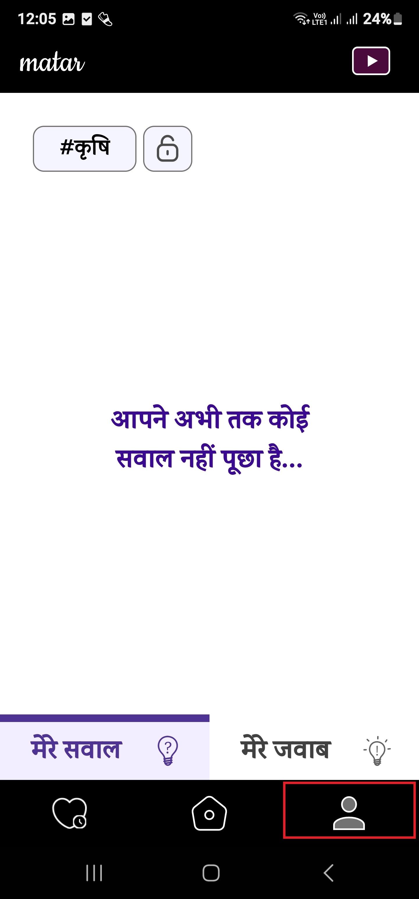 4. When we navigate right to the home button the profile button is placed at the lower right which shows all the asked questions and answers provided by you. The profile button is highlighted in the red box in the screenshot below: