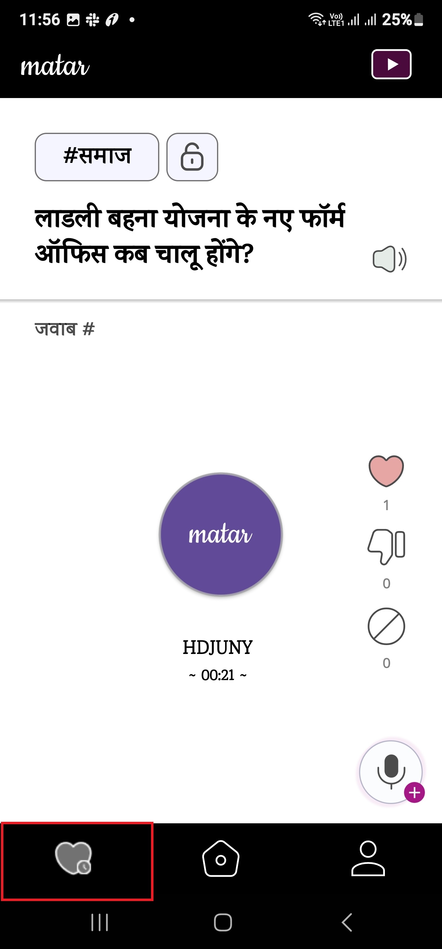 3. When we navigate left to the home button the heart button is placed which shows all the liked answers by the user. The heart button is highlighted in the red box:
