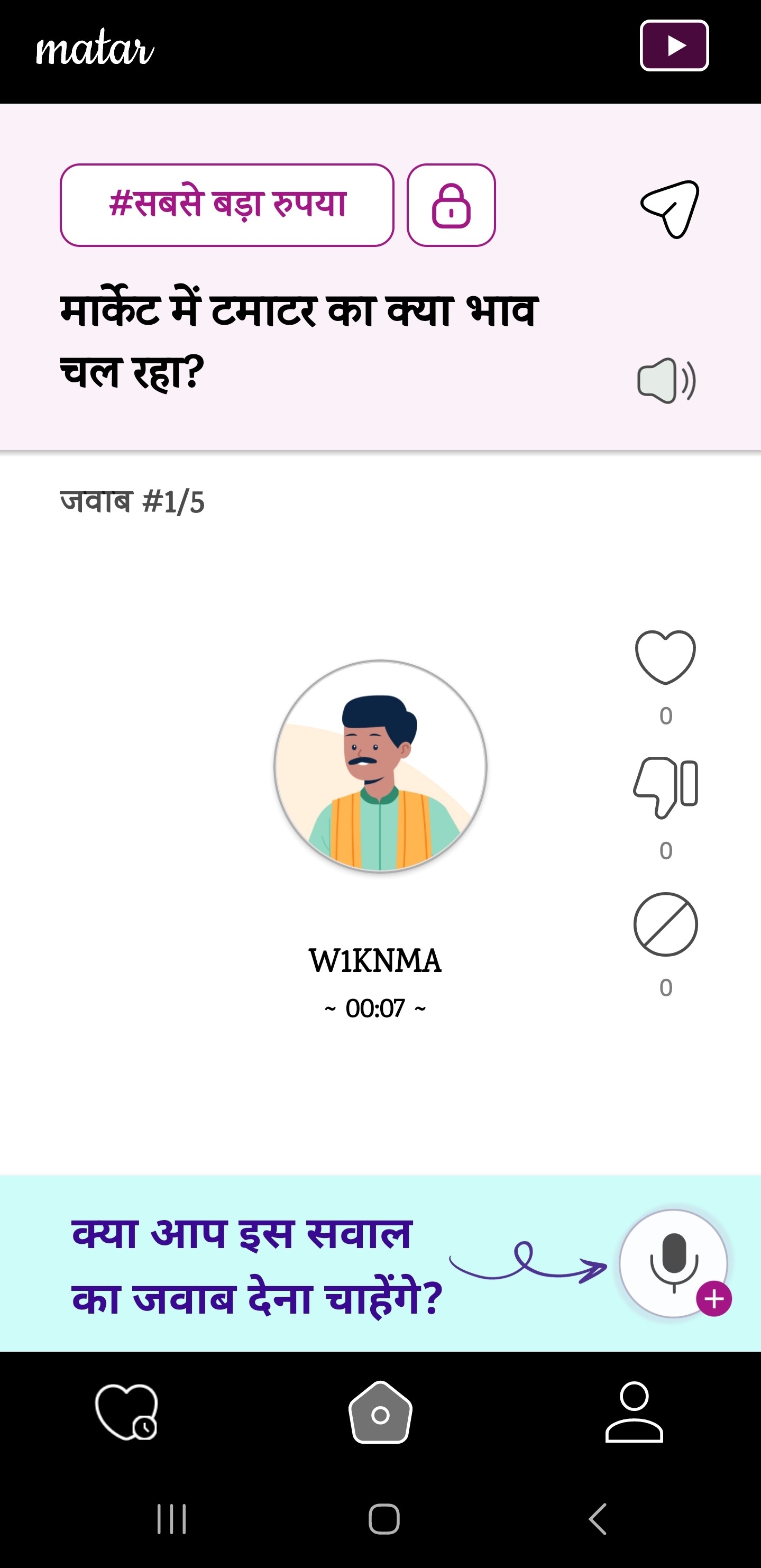 When you sign up to Matar App you are automatically redirected to answer questions on live feed from a specific subject. A subject and its question are listed on the upper left side of the app. See the screenshot below for reference.